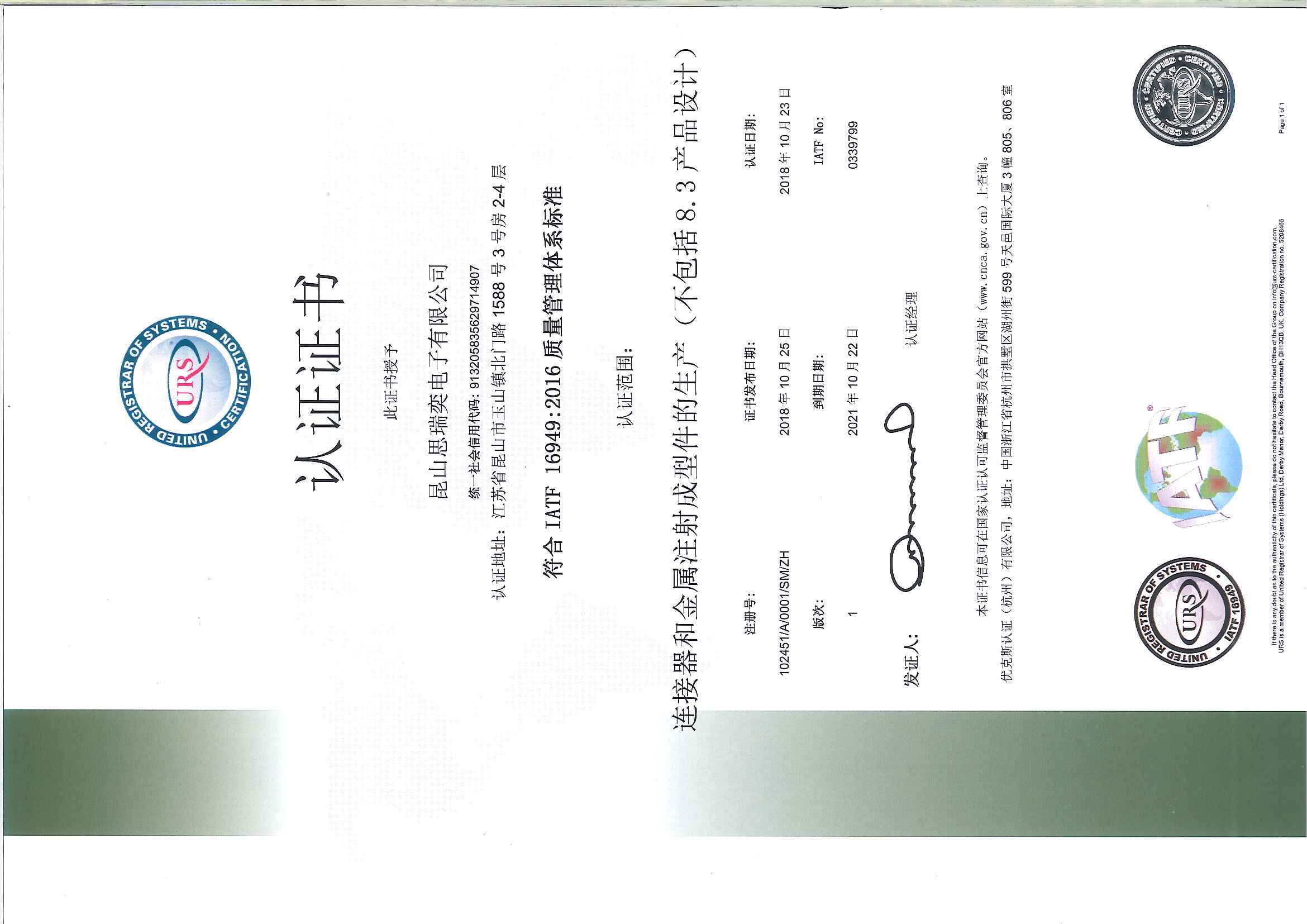 思瑞奕電子有限公司成立于2010年10月,注冊(cè)資金7500萬人民幣,總部位于江蘇省昆山市,在重慶、江蘇東臺(tái)、江蘇太倉(cāng)設(shè)有分廠,公司于2011年通過ISO9001/ISO14001認(rèn)證,2013年通過高新技術(shù)企業(yè)和TS16949(IATF)體系認(rèn)定,2016年先后通過知識(shí)產(chǎn)權(quán)管理體系認(rèn)證、安全生產(chǎn)標(biāo)準(zhǔn)化認(rèn)證,2017年獲頒江蘇省民營(yíng)科技企業(yè)、2018年先后獲得蘇州市人民政府認(rèn)定企業(yè)技術(shù)中心、科技部認(rèn)定中小型科技企業(yè)、江蘇省最具成長(zhǎng)性高科技企業(yè)、2020年獲得江蘇省人民政府認(rèn)定企業(yè)技術(shù)中心、2021年獲得蘇州市瞪羚計(jì)劃入庫(kù)企業(yè)、江蘇省省級(jí)工程技術(shù)研究中心、江蘇省專精特新中小企業(yè)等榮譽(yù)稱號(hào)......